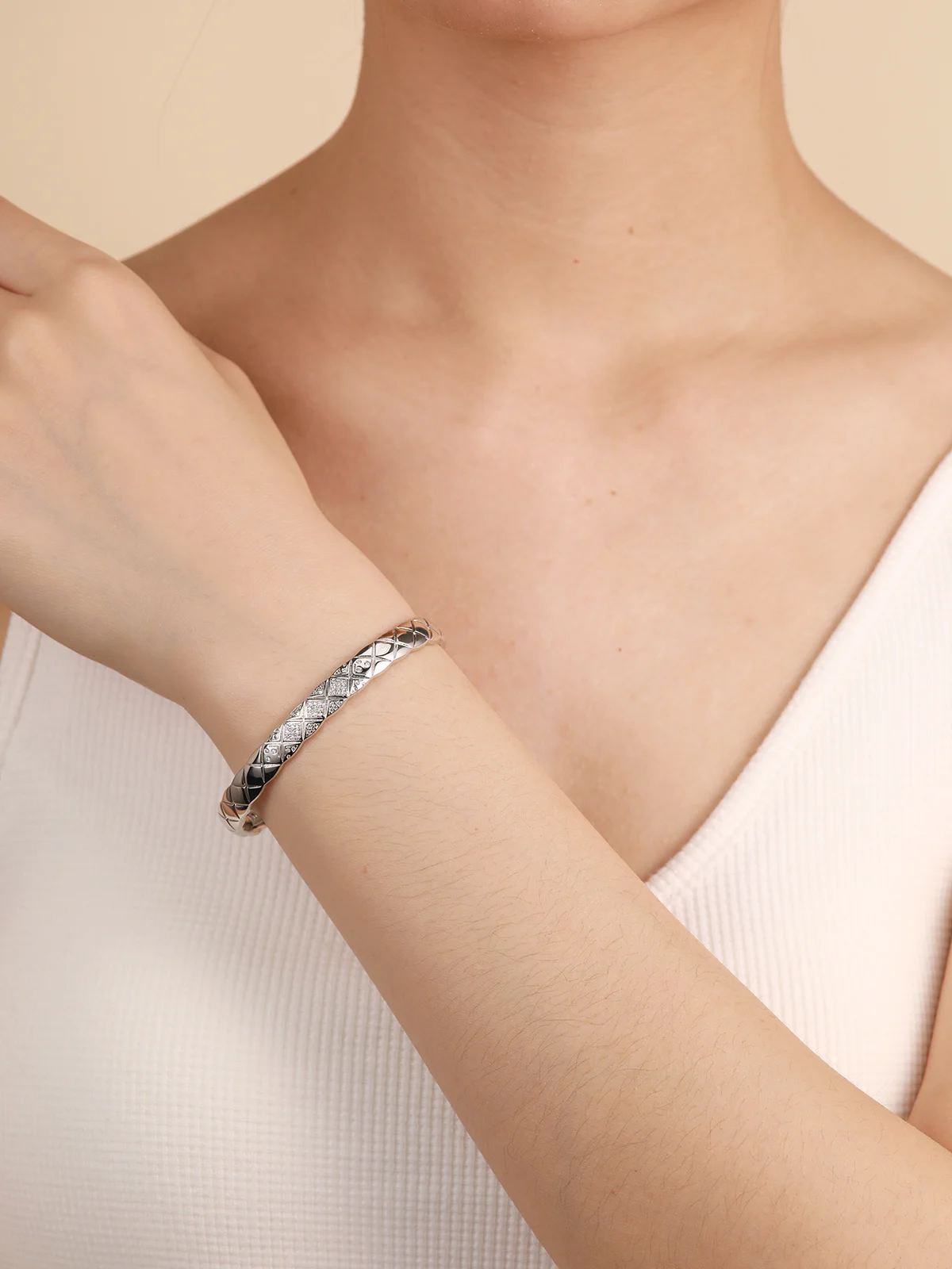 TYYL Vintage Glossy Diamond-shaped Cross Bracelet for Women Gold Plated Rhombus Zircon Quilted Surface Texture Bangle Jewelry